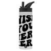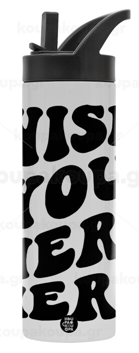 Wish you were here, Metallic thermos bottle with straw & handle, stainless steel (Stainless steel 304), double-walled, 600ml.