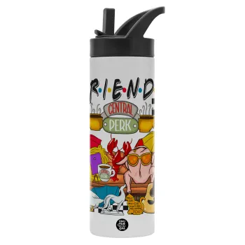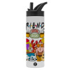 Friends, Metallic thermos bottle with straw & handle, stainless steel (Stainless steel 304), double-walled, 600ml.