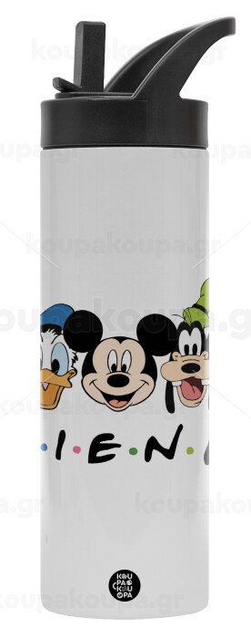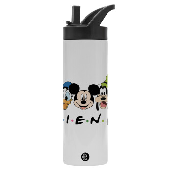 Friends characters, Metallic thermos bottle with straw & handle, stainless steel (Stainless steel 304), double-walled, 600ml.