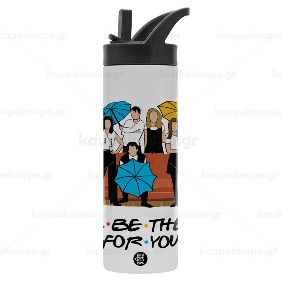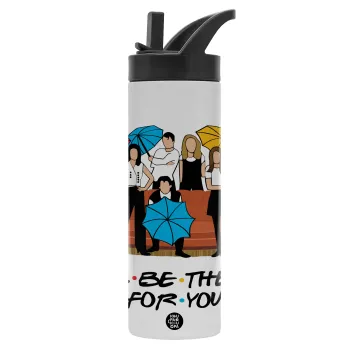 Friends cover, Metallic thermos bottle with straw & handle, stainless steel (Stainless steel 304), double-walled, 600ml.