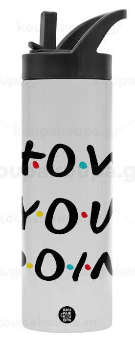 Friends How You Doin'?, Metallic thermos bottle with straw & handle, stainless steel (Stainless steel 304), double-walled, 600ml.