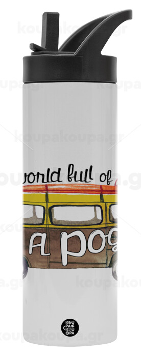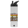 Outerbanks Pogue Life, Metallic thermos bottle with straw & handle, stainless steel (Stainless steel 304), double-walled, 600ml.