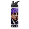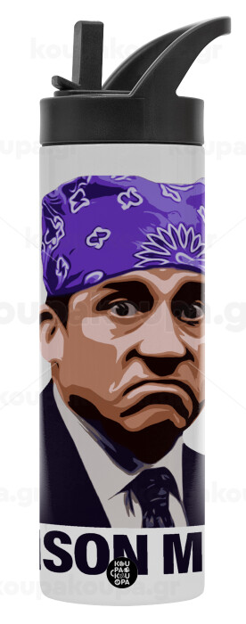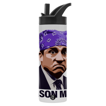 Prison Mike The office, Metallic thermos bottle with straw & handle, stainless steel (Stainless steel 304), double-walled, 600ml.