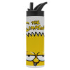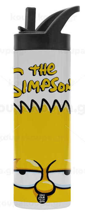 The Simpsons Bart, Metallic thermos bottle with straw & handle, stainless steel (Stainless steel 304), double-walled, 600ml.