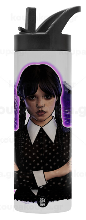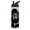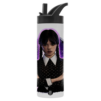 Wednesday moonlight, Metallic thermos bottle with straw & handle, stainless steel (Stainless steel 304), double-walled, 600ml.