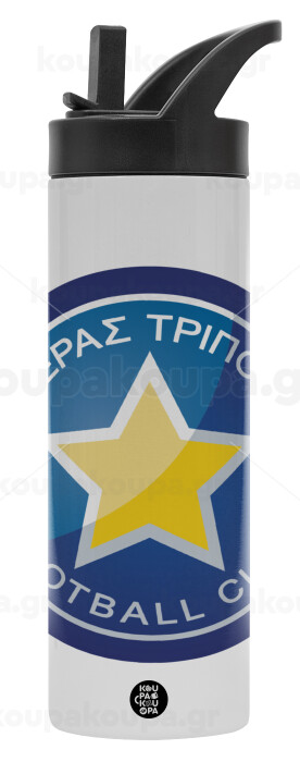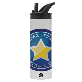 Asteras Tripolis, Metallic thermos bottle with straw & handle, stainless steel (Stainless steel 304), double-walled, 600ml.