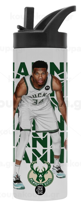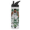 Giannis Antetokounmpo, Metallic thermos bottle with straw & handle, stainless steel (Stainless steel 304), double-walled, 600ml.