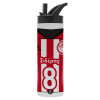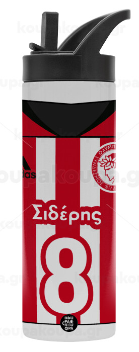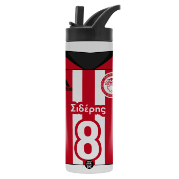 Ολυμπιακός εμφάνιση, Metallic thermos bottle with straw & handle, stainless steel (Stainless steel 304), double-walled, 600ml.