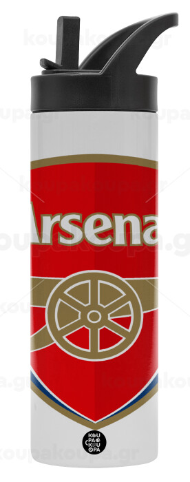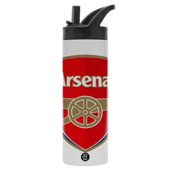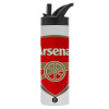 Arsenal, Metallic thermos bottle with straw & handle, stainless steel (Stainless steel 304), double-walled, 600ml.