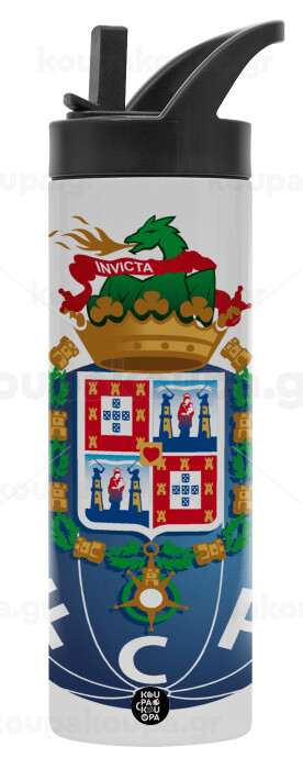 FCP, Metallic thermos bottle with straw & handle, stainless steel (Stainless steel 304), double-walled, 600ml.