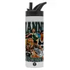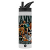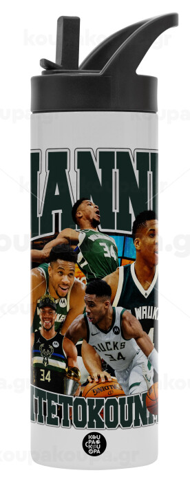 Giannis Antetokounmpo, Metallic thermos bottle with straw & handle, stainless steel (Stainless steel 304), double-walled, 600ml.