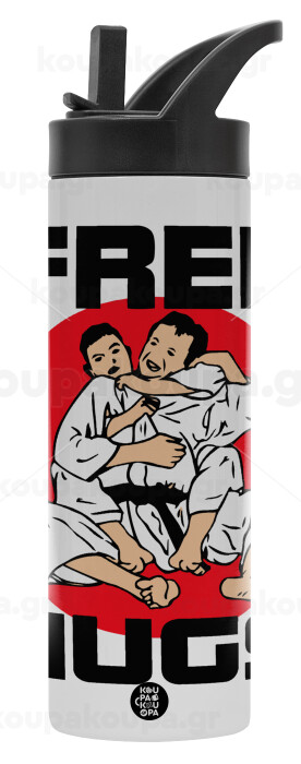 JUDO free hugs, Metallic thermos bottle with straw & handle, stainless steel (Stainless steel 304), double-walled, 600ml.