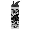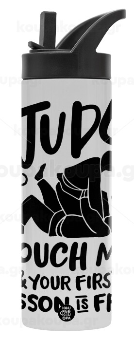 Judo Touch Me And Your First Lesson Is Free, Metallic thermos bottle with straw & handle, stainless steel (Stainless steel 304), double-walled, 600ml.