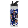 Kylian Mbappé, Metallic thermos bottle with straw & handle, stainless steel (Stainless steel 304), double-walled, 600ml.
