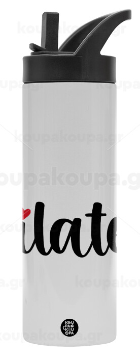 Pilates love, Metallic thermos bottle with straw & handle, stainless steel (Stainless steel 304), double-walled, 600ml.