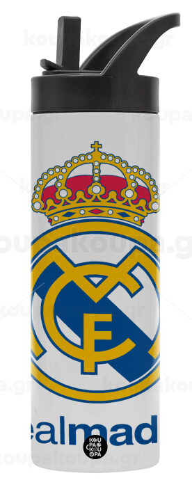 Real Madrid CF, Metallic thermos bottle with straw & handle, stainless steel (Stainless steel 304), double-walled, 600ml.