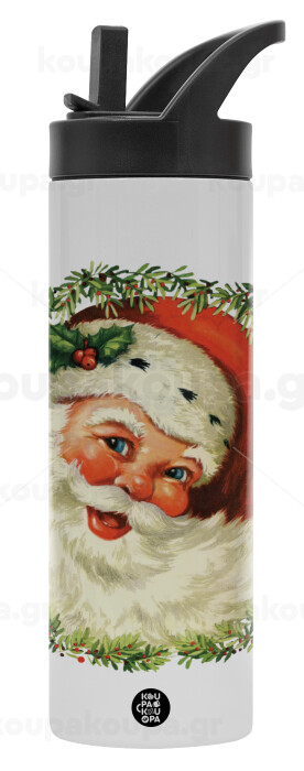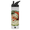 Santa Claus, Metallic thermos bottle with straw & handle, stainless steel (Stainless steel 304), double-walled, 600ml.