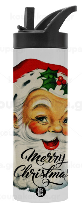 Santa vintage, Metallic thermos bottle with straw & handle, stainless steel (Stainless steel 304), double-walled, 600ml.