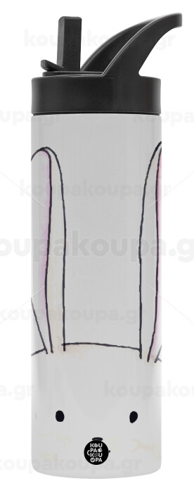 Ο λαγός του πάσχα, Metallic thermos bottle with straw & handle, stainless steel (Stainless steel 304), double-walled, 600ml.
