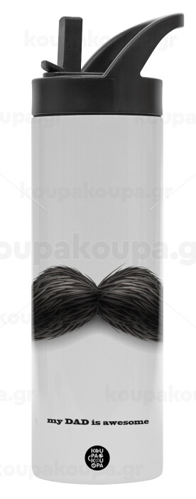 Ο καλύτερος μουστακαλής του κόσμου!!!, Metallic thermos bottle with straw & handle, stainless steel (Stainless steel 304), double-walled, 600ml.