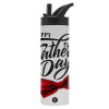 Happy father's Days, Metallic thermos bottle with straw & handle, stainless steel (Stainless steel 304), double-walled, 600ml.