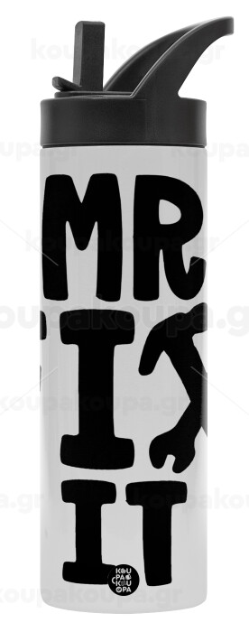 Mr fix it, Metallic thermos bottle with straw & handle, stainless steel (Stainless steel 304), double-walled, 600ml.