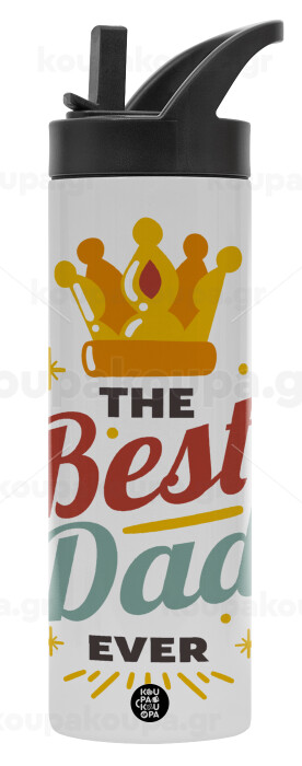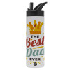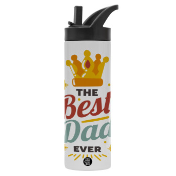 The Best DAD ever, Metallic thermos bottle with straw & handle, stainless steel (Stainless steel 304), double-walled, 600ml.