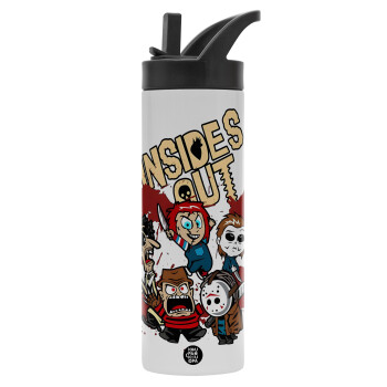 Halloween Inside out, Metallic thermos bottle with straw & handle, stainless steel (Stainless steel 304), double-walled, 600ml.