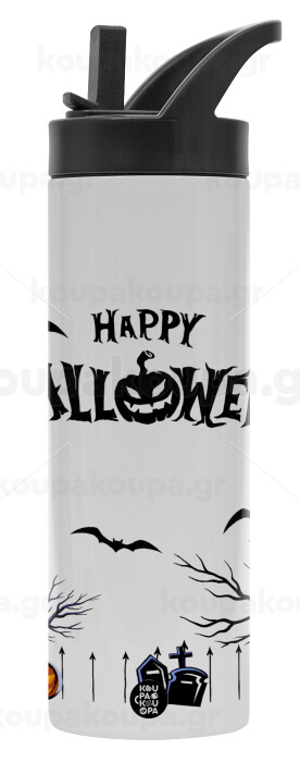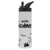 Happy Halloween cemetery, Metallic thermos bottle with straw & handle, stainless steel (Stainless steel 304), double-walled, 600ml.