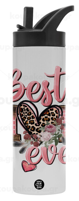 Best mom ever Mother's Day, Metallic thermos bottle with straw & handle, stainless steel (Stainless steel 304), double-walled, 600ml.