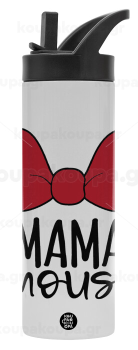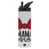 MAMA mouse, Metallic thermos bottle with straw & handle, stainless steel (Stainless steel 304), double-walled, 600ml.