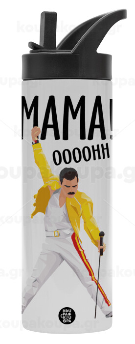 mama ooohh!, Metallic thermos bottle with straw & handle, stainless steel (Stainless steel 304), double-walled, 600ml.