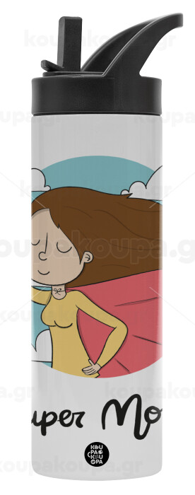 Super mom, Metallic thermos bottle with straw & handle, stainless steel (Stainless steel 304), double-walled, 600ml.