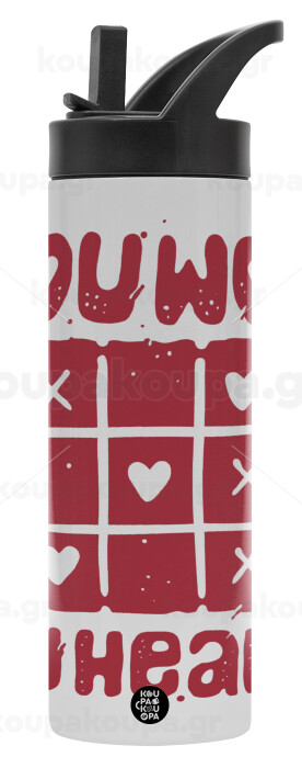 Τρίλιζα you won my heart, Metallic thermos bottle with straw & handle, stainless steel (Stainless steel 304), double-walled, 600ml.