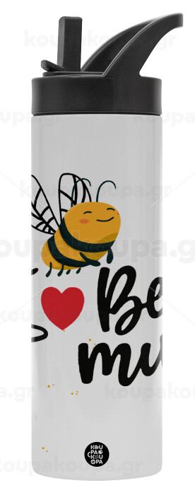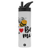 Bee mine!!!, Metallic thermos bottle with straw & handle, stainless steel (Stainless steel 304), double-walled, 600ml.