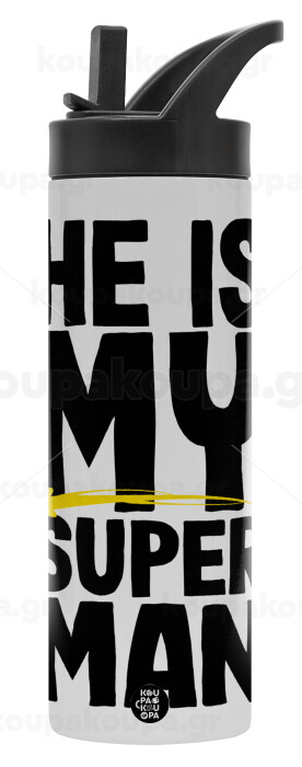 He is my superman, Metallic thermos bottle with straw & handle, stainless steel (Stainless steel 304), double-walled, 600ml.