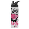 I Just want a hug!, Metallic thermos bottle with straw & handle, stainless steel (Stainless steel 304), double-walled, 600ml.
