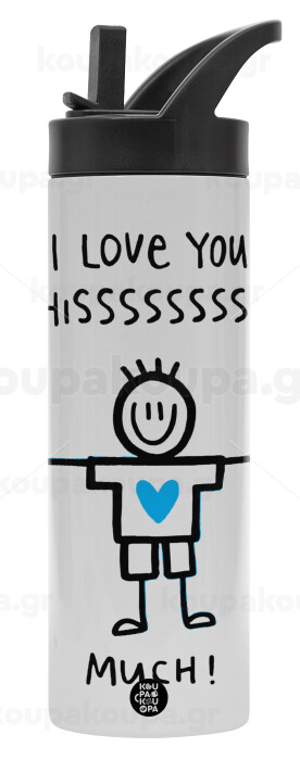 I Love you thissss much (boy)..., Metallic thermos bottle with straw & handle, stainless steel (Stainless steel 304), double-walled, 600ml.