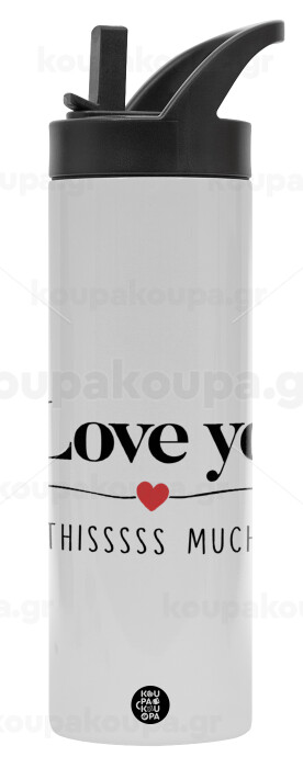 I Love you thisssss much, Metallic thermos bottle with straw & handle, stainless steel (Stainless steel 304), double-walled, 600ml.