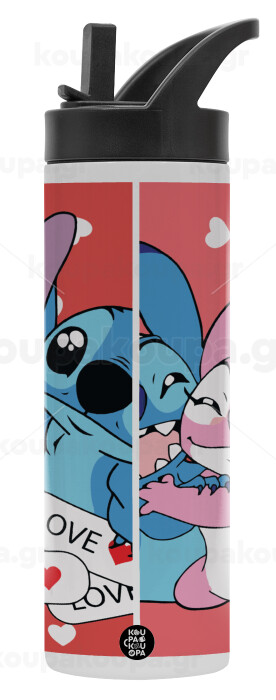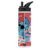 Lilo & Stitch Love, Metallic thermos bottle with straw & handle, stainless steel (Stainless steel 304), double-walled, 600ml.