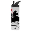 Love Car, Metallic thermos bottle with straw & handle, stainless steel (Stainless steel 304), double-walled, 600ml.