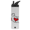 Love hands, Metallic thermos bottle with straw & handle, stainless steel (Stainless steel 304), double-walled, 600ml.