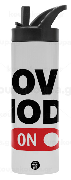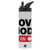 LOVE MODE ON, Metallic thermos bottle with straw & handle, stainless steel (Stainless steel 304), double-walled, 600ml.