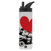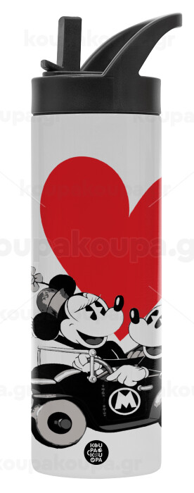 Mickey & Minnie love car, Metallic thermos bottle with straw & handle, stainless steel (Stainless steel 304), double-walled, 600ml.