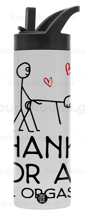Thanks for all the orgasms, Metallic thermos bottle with straw & handle, stainless steel (Stainless steel 304), double-walled, 600ml.