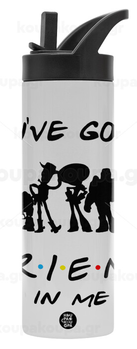 You've Got a Friend in Me, Metallic thermos bottle with straw & handle, stainless steel (Stainless steel 304), double-walled, 600ml.