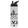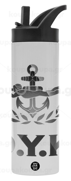 Ο.Υ.Κ., Metallic thermos bottle with straw & handle, stainless steel (Stainless steel 304), double-walled, 600ml.