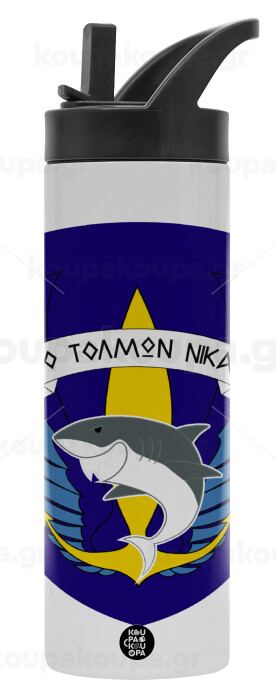 Hellas special force's shark, Metallic thermos bottle with straw & handle, stainless steel (Stainless steel 304), double-walled, 600ml.