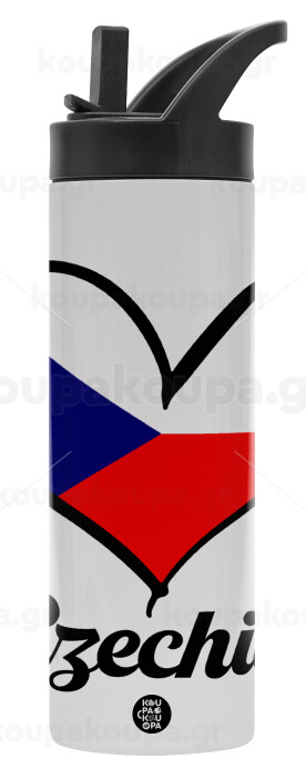 Czechia flag, Metallic thermos bottle with straw & handle, stainless steel (Stainless steel 304), double-walled, 600ml.