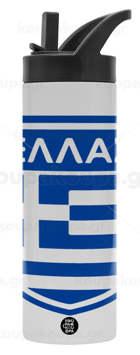 Hellas, Metallic thermos bottle with straw & handle, stainless steel (Stainless steel 304), double-walled, 600ml.